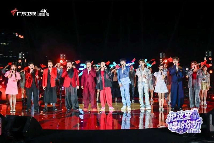 在整场音乐会中,大湾区的地域风情与人文温度,在歌声里化作鲜活图景。《Hello大湾》展现粤港澳三地风情,《你会爱上我》是藏着在湾区生活的小确幸,《深圳欢迎您》向全世界发出来自大湾区的诚挚邀请,《春风化岭南》诉说着岭南水乡温润与粤韵绵长;《闪光》传递湾区奋进追梦力量,《无名之辈》歌颂平凡人绽放不凡,《少年派》诠释新时代青年乘风破浪的闯劲,《追光旅行》勾勒Z时代青年奔赴梦想的模样;《就是哪吒》展现非遗与流行的破壁融合,《共唱辉煌》展现香港同胞的爱国情怀,《灯火里的中国》引发全场大合唱。